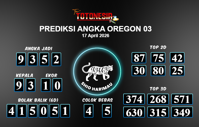 Prediksi OREGON 03 adalah perhitungan nomor togel unggulan dari agen suhu togel yang menyajikan angka prediksi paling akurat, sehingga memberikan banyak keuntungan saat bermain di pasar togel OREGON 03 . TotoNesia adalah prediksi dengan rasio kemenangan tertinggi di Indonesia. Sebagai penyedia togel yang dapat dipercaya, kami bertekad untuk memberikan ramalan togel yang handal dengan hadiah terbesarnya. Maka dari itu, jangan sampai terlewatkan prediksi bandar togel dengan hadiah terbanyak bet 100 dari pasar togel terbaik OREGON 03 Daftar sekarang juga di bandar.