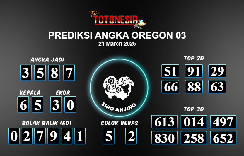 Toto Nesia : Bocoran Prediksi Togel OREGON 03 Tanggal 21 MARET 2026
