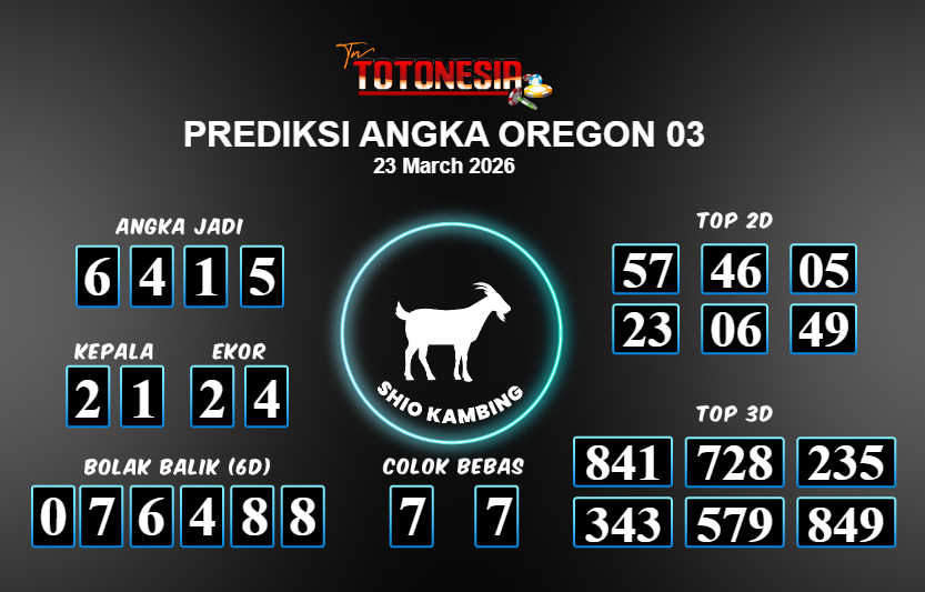 Prediksi OREGON 03 adalah perhitungan nomor togel unggulan dari agen suhu togel yang menyajikan angka prediksi paling akurat, sehingga memberikan banyak keuntungan saat bermain di pasar togel OREGON 03 . TotoNesia adalah prediksi dengan rasio kemenangan tertinggi di Indonesia. Sebagai penyedia togel yang dapat dipercaya, kami bertekad untuk memberikan ramalan togel yang handal dengan hadiah terbesarnya. Maka dari itu, jangan sampai terlewatkan prediksi bandar togel dengan hadiah terbanyak bet 100 dari pasar togel terbaik OREGON 03 Daftar sekarang juga di bandar.