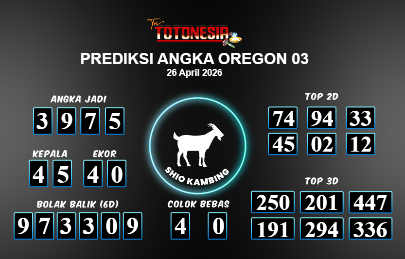 Toto Nesia : Bocoran Prediksi Togel OREGON 03 Tanggal 26 APRIL 2026