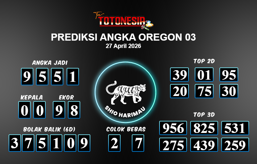 Toto Nesia : Bocoran Prediksi Togel OREGON 03 Tanggal 27 APRIL 2026