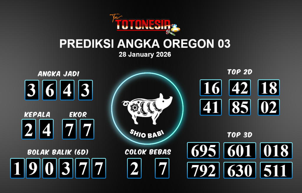 Prediksi OREGON 03 adalah perhitungan nomor togel unggulan dari agen suhu togel yang menyajikan angka prediksi paling akurat, sehingga memberikan banyak keuntungan saat bermain di pasar togel OREGON 03. TotoNesia adalah prediksi dengan rasio kemenangan tertinggi di Indonesia. Sebagai penyedia togel yang dapat dipercaya, kami bertekad untuk memberikan ramalan togel yang handal dengan hadiah terbesarnya. Maka dari itu, jangan sampai terlewatkan prediksi bandar togel dengan hadiah terbanyak bet 100 dari pasar togel terbaik OREGON 03 daftar sekarang juga di bandar.