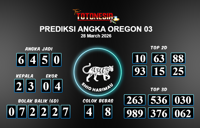 Prediksi OREGON 03 adalah perhitungan nomor togel unggulan dari agen suhu togel yang menyajikan angka prediksi paling akurat, sehingga memberikan banyak keuntungan saat bermain di pasar togel OREGON 03 . TotoNesia adalah prediksi dengan rasio kemenangan tertinggi di Indonesia. Sebagai penyedia togel yang dapat dipercaya, kami bertekad untuk memberikan ramalan togel yang handal dengan hadiah terbesarnya. Maka dari itu, jangan sampai terlewatkan prediksi bandar togel dengan hadiah terbanyak bet 100 dari pasar togel terbaik OREGON 03 Daftar sekarang juga di bandar.