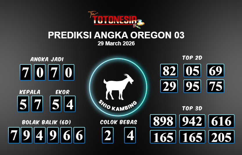 Prediksi OREGON 03 adalah perhitungan nomor togel unggulan dari agen suhu togel yang menyajikan angka prediksi paling akurat, sehingga memberikan banyak keuntungan saat bermain di pasar togel OREGON 03 . TotoNesia adalah prediksi dengan rasio kemenangan tertinggi di Indonesia. Sebagai penyedia togel yang dapat dipercaya, kami bertekad untuk memberikan ramalan togel yang handal dengan hadiah terbesarnya. Maka dari itu, jangan sampai terlewatkan prediksi bandar togel dengan hadiah terbanyak bet 100 dari pasar togel terbaik OREGON 03 Daftar sekarang juga di bandar.