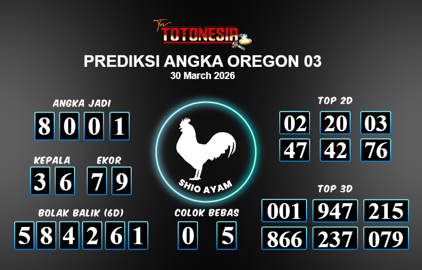 Prediksi OREGON 03 adalah perhitungan nomor togel unggulan dari agen suhu togel yang menyajikan angka prediksi paling akurat, sehingga memberikan banyak keuntungan saat bermain di pasar togel OREGON 03 . TotoNesia adalah prediksi dengan rasio kemenangan tertinggi di Indonesia. Sebagai penyedia togel yang dapat dipercaya, kami bertekad untuk memberikan ramalan togel yang handal dengan hadiah terbesarnya. Maka dari itu, jangan sampai terlewatkan prediksi bandar togel dengan hadiah terbanyak bet 100 dari pasar togel terbaik OREGON 03 Daftar sekarang juga di bandar.
