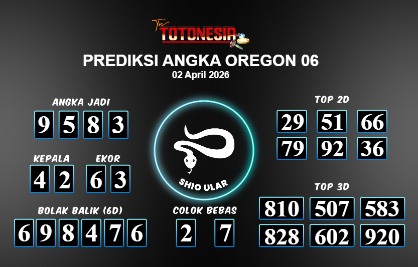 Prediksi OREGON 06 adalah perhitungan nomor togel unggulan dari agen suhu togel yang menyajikan angka prediksi paling akurat, sehingga memberikan banyak keuntungan saat bermain di pasar togel OREGON 06 . TotoNesia adalah prediksi dengan rasio kemenangan tertinggi di Indonesia. Sebagai penyedia togel yang dapat dipercaya, kami bertekad untuk memberikan ramalan togel yang handal dengan hadiah terbesarnya. Maka dari itu, jangan sampai terlewatkan prediksi bandar togel dengan hadiah terbanyak bet 100 dari pasar togel terbaik OREGON 06 Daftar sekarang juga di bandar.