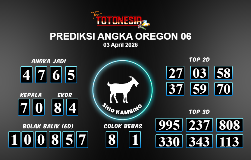 Prediksi OREGON 06 adalah perhitungan nomor togel unggulan dari agen suhu togel yang menyajikan angka prediksi paling akurat, sehingga memberikan banyak keuntungan saat bermain di pasar togel OREGON 06 . TotoNesia adalah prediksi dengan rasio kemenangan tertinggi di Indonesia. Sebagai penyedia togel yang dapat dipercaya, kami bertekad untuk memberikan ramalan togel yang handal dengan hadiah terbesarnya. Maka dari itu, jangan sampai terlewatkan prediksi bandar togel dengan hadiah terbanyak bet 100 dari pasar togel terbaik OREGON 06 Daftar sekarang juga di bandar.