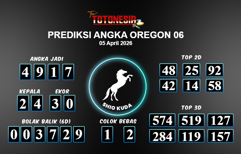 Prediksi OREGON 06 adalah perhitungan nomor togel unggulan dari agen suhu togel yang menyajikan angka prediksi paling akurat, sehingga memberikan banyak keuntungan saat bermain di pasar togel OREGON 06 . TotoNesia adalah prediksi dengan rasio kemenangan tertinggi di Indonesia. Sebagai penyedia togel yang dapat dipercaya, kami bertekad untuk memberikan ramalan togel yang handal dengan hadiah terbesarnya. Maka dari itu, jangan sampai terlewatkan prediksi bandar togel dengan hadiah terbanyak bet 100 dari pasar togel terbaik OREGON 06 Daftar sekarang juga di bandar.