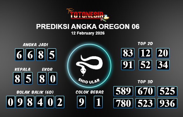 Toto Nesia : Bocoran Prediksi Togel OREGON 06 Tanggal 12 FEBUARI 2026