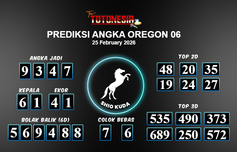 Toto Nesia : Bocoran Prediksi Togel OREGON 06 Tanggal 25 FEBUARI 2026