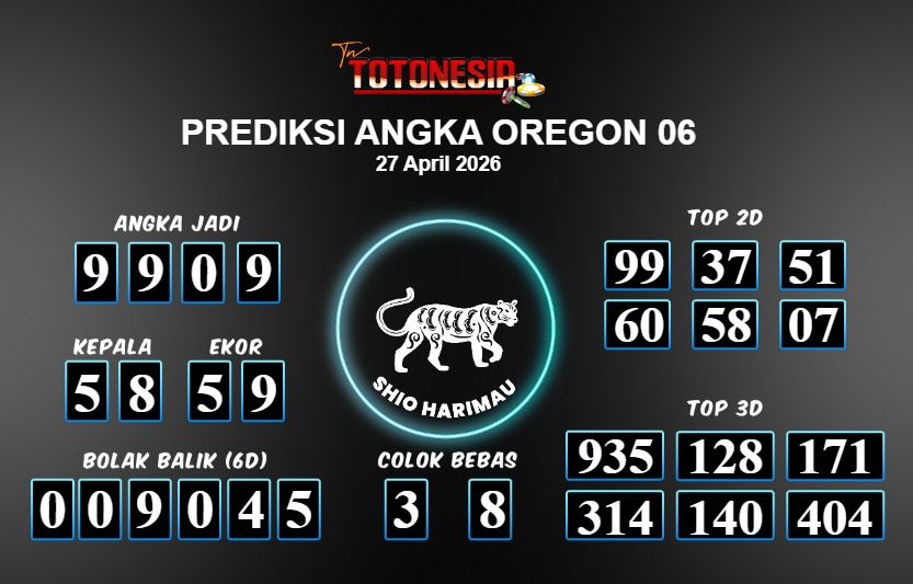 Prediksi OREGON 06 adalah perhitungan nomor togel unggulan dari agen suhu togel yang menyajikan angka prediksi paling akurat, sehingga memberikan banyak keuntungan saat bermain di pasar togel OREGON 06 . TotoNesia adalah prediksi dengan rasio kemenangan tertinggi di Indonesia. Sebagai penyedia togel yang dapat dipercaya, kami bertekad untuk memberikan ramalan togel yang handal dengan hadiah terbesarnya. Maka dari itu, jangan sampai terlewatkan prediksi bandar togel dengan hadiah terbanyak bet 100 dari pasar togel terbaik OREGON 06 Daftar sekarang juga di bandar.