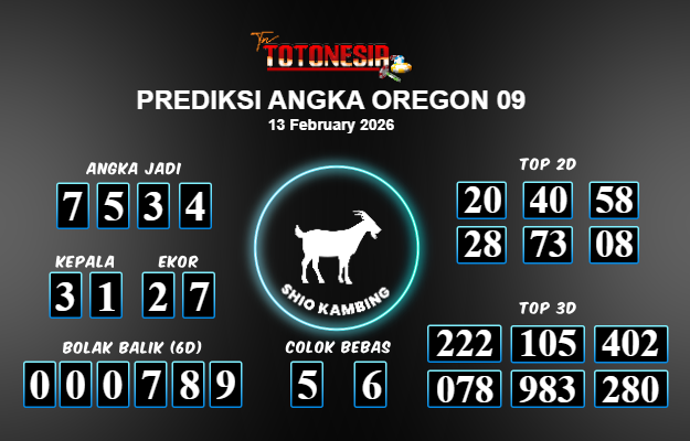 Toto Nesia : Bocoran Prediksi Togel OREGON 09 Tanggal 13 FEBUARI 2026