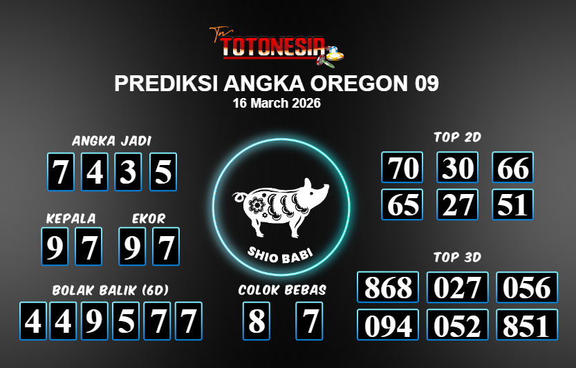 Toto Nesia : Bocoran Prediksi Togel OREGON 09 Tanggal 16 MARET 2026