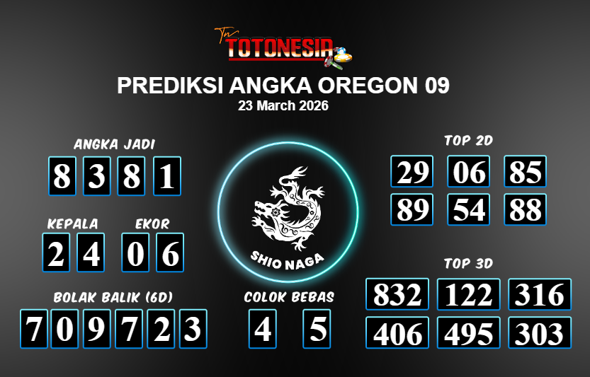 Prediksi OREGON 09 adalah perhitungan nomor togel unggulan dari agen suhu togel yang menyajikan angka prediksi paling akurat, sehingga memberikan banyak keuntungan saat bermain di pasar togel OREGON 09 . TotoNesia adalah prediksi dengan rasio kemenangan tertinggi di Indonesia. Sebagai penyedia togel yang dapat dipercaya, kami bertekad untuk memberikan ramalan togel yang handal dengan hadiah terbesarnya. Maka dari itu, jangan sampai terlewatkan prediksi bandar togel dengan hadiah terbanyak bet 100 dari pasar togel terbaik OREGON 09 Daftar sekarang juga di bandar.