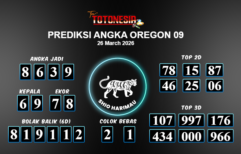 Prediksi OREGON 09 adalah perhitungan nomor togel unggulan dari agen suhu togel yang menyajikan angka prediksi paling akurat, sehingga memberikan banyak keuntungan saat bermain di pasar togel OREGON 09 . TotoNesia adalah prediksi dengan rasio kemenangan tertinggi di Indonesia. Sebagai penyedia togel yang dapat dipercaya, kami bertekad untuk memberikan ramalan togel yang handal dengan hadiah terbesarnya. Maka dari itu, jangan sampai terlewatkan prediksi bandar togel dengan hadiah terbanyak bet 100 dari pasar togel terbaik OREGON 09 Daftar sekarang juga di bandar.