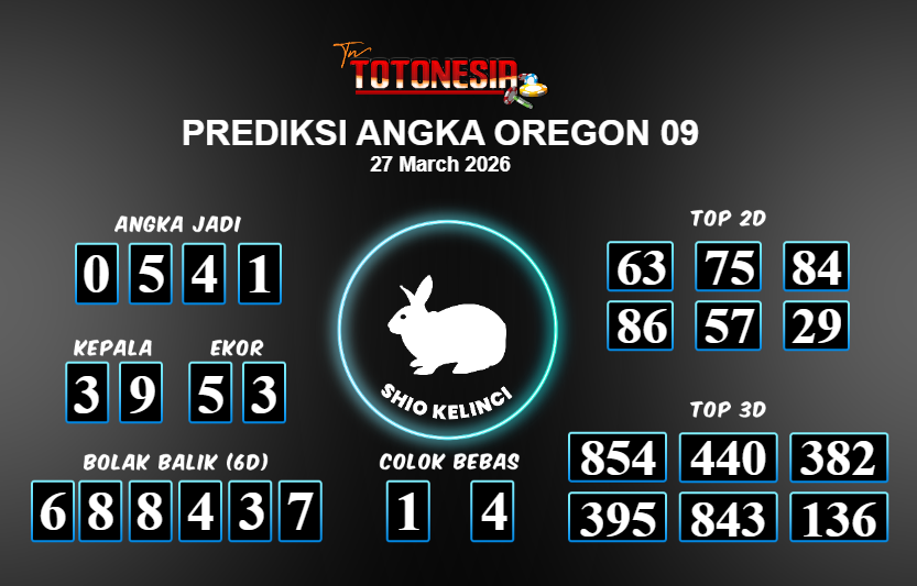 Prediksi OREGON 09 adalah perhitungan nomor togel unggulan dari agen suhu togel yang menyajikan angka prediksi paling akurat, sehingga memberikan banyak keuntungan saat bermain di pasar togel OREGON 09 . TotoNesia adalah prediksi dengan rasio kemenangan tertinggi di Indonesia. Sebagai penyedia togel yang dapat dipercaya, kami bertekad untuk memberikan ramalan togel yang handal dengan hadiah terbesarnya. Maka dari itu, jangan sampai terlewatkan prediksi bandar togel dengan hadiah terbanyak bet 100 dari pasar togel terbaik OREGON 09 Daftar sekarang juga di bandar.