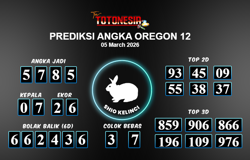 Toto Nesia : Bocoran Prediksi Togel OREGON 12 Tanggal 05 MARET 2026