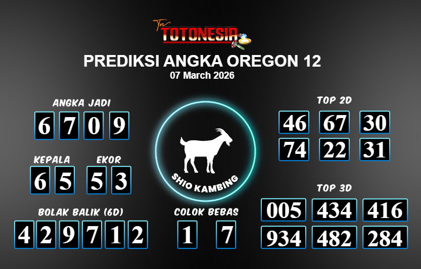 Toto Nesia : Bocoran Prediksi Togel OREGON 12 Tanggal 07 MARET 2026