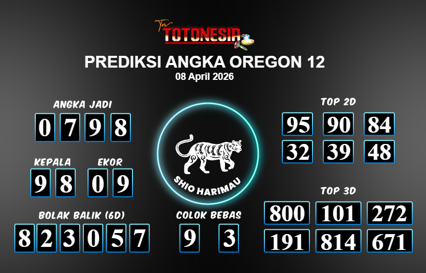 Toto Nesia : Bocoran Prediksi Togel OREGON 12 Tanggal 08 APRIL 2026
