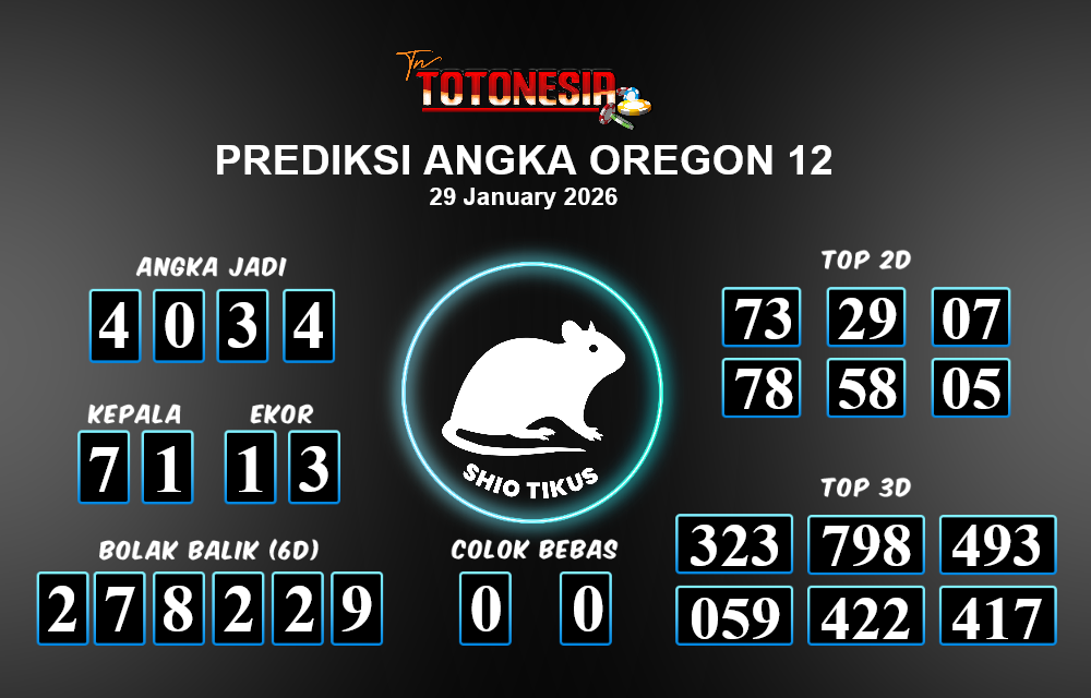 Prediksi OREGON 12 adalah perhitungan nomor togel unggulan dari agen suhu togel yang menyajikan angka prediksi paling akurat, sehingga memberikan banyak keuntungan saat bermain di pasar togel OREGON 12. TotoNesia adalah prediksi dengan rasio kemenangan tertinggi di Indonesia. Sebagai penyedia togel yang dapat dipercaya, kami bertekad untuk memberikan ramalan togel yang handal dengan hadiah terbesarnya. Maka dari itu, jangan sampai terlewatkan prediksi bandar togel dengan hadiah terbanyak bet 100 dari pasar togel terbaik OREGON 12 daftar sekarang juga di bandar.