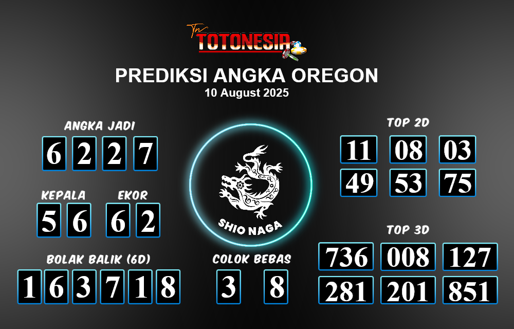 Toto Nesia : Bocoran Prediksi Togel OREGON Tanggal 10 Agustus 2025