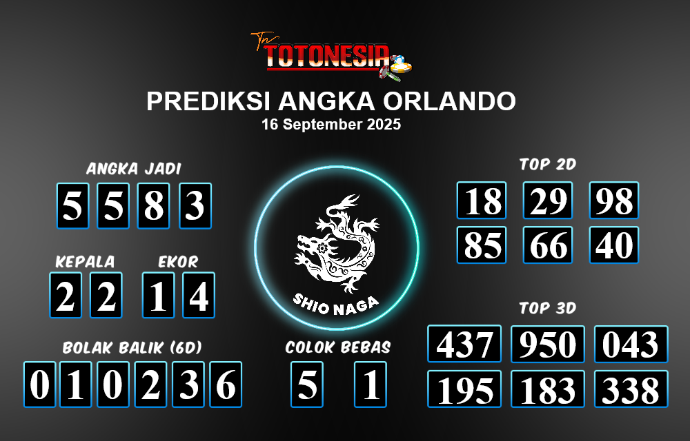 Toto Nesia : Bocoran Prediksi Togel ORLANDO Tanggal 16 SEPTEMBER 2025
