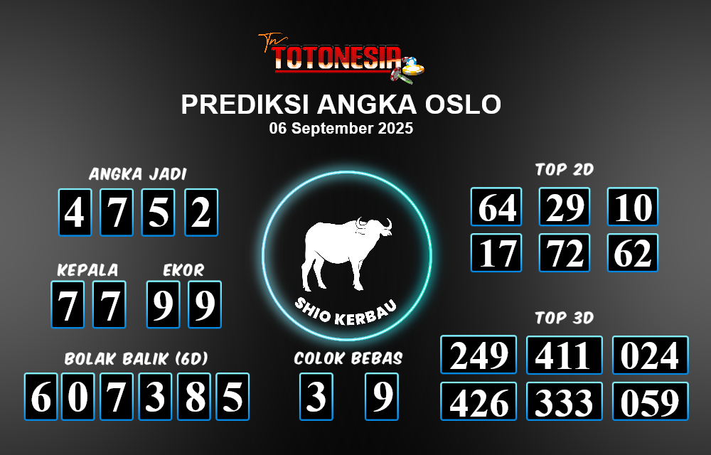 Toto Nesia : Bocoran Prediksi Togel OSLO Tanggal 06 SEPTEMBER 2025
