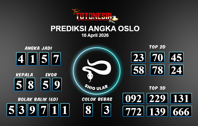 Toto Nesia : Bocoran Prediksi Togel OSLO Tanggal 16 APRIL 2026