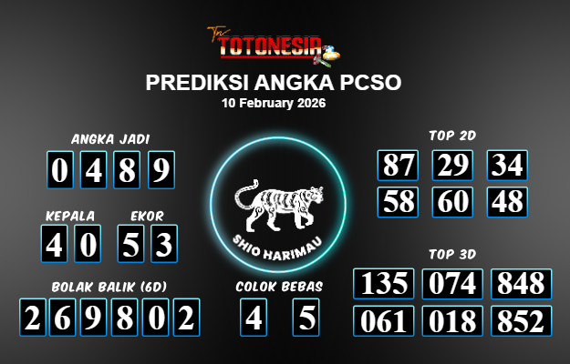 Toto Nesia : Bocoran Prediksi Togel PCSO Tanggal 10 FEBUARI 2026
