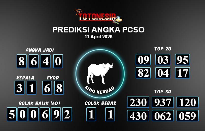 Toto Nesia : Bocoran Prediksi Togel PCSO Tanggal 11 APRIL 2026
