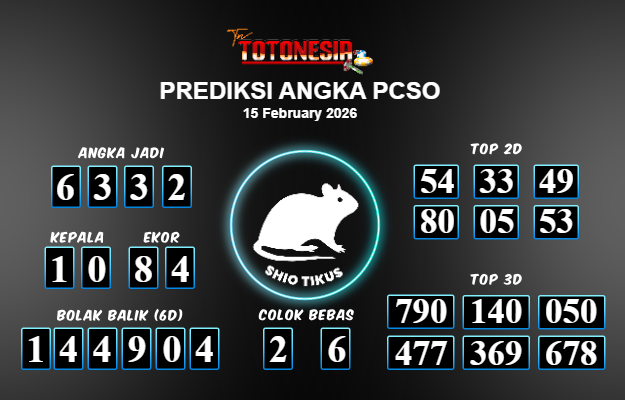 Toto Nesia : Bocoran Prediksi Togel PCSO Tanggal 15 FEBUARI 2026