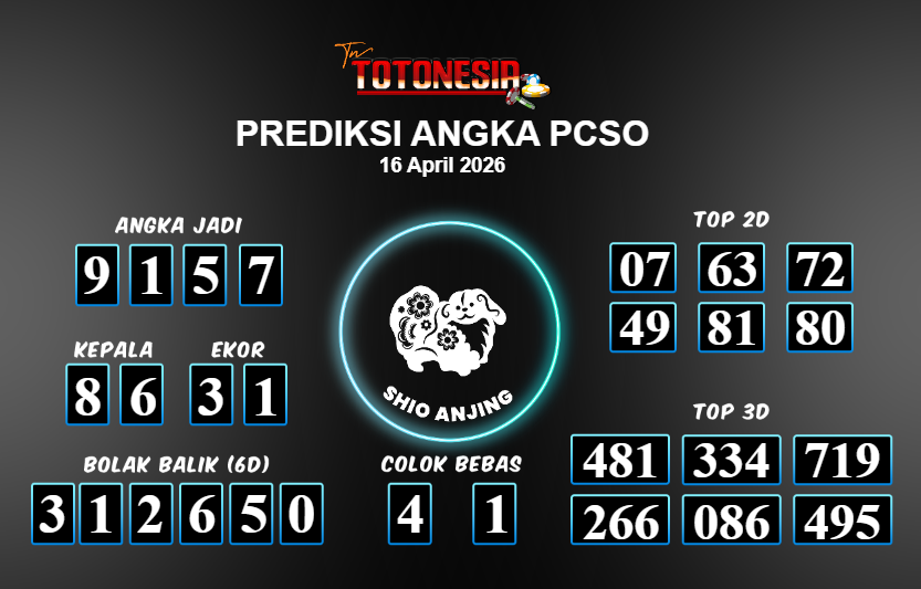 Toto Nesia : Bocoran Prediksi Togel PCSO Tanggal 16 APRIL 2026