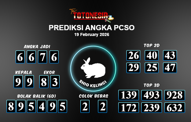 Toto Nesia : Bocoran Prediksi Togel PCSO Tanggal 19 FEBUARI 2026