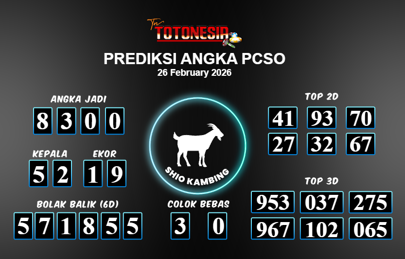 Toto Nesia : Bocoran Prediksi Togel PCSO Tanggal 26 FEBUARI 2026
