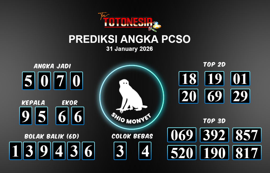 Toto Nesia : Bocoran Prediksi Togel PCSO Tanggal 31 JANUARI 2026