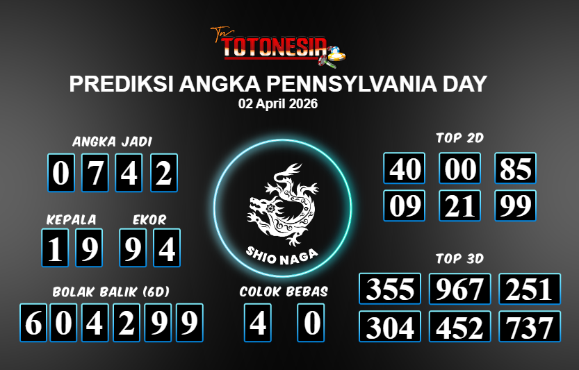 Toto Nesia : Bocoran Prediksi Togel PENNSYLVANIA DAY Tanggal 02 APRIL 2026