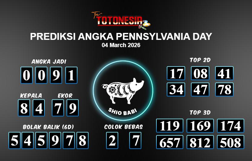 Toto Nesia : Bocoran Prediksi Togel PENNSYLVANIA DAY Tanggal 04 MARET 2026