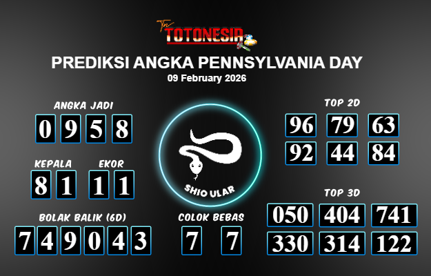 Toto Nesia : Bocoran Prediksi Togel PENNSYLVANIA DAY Tanggal 09 FEBUARI 2026