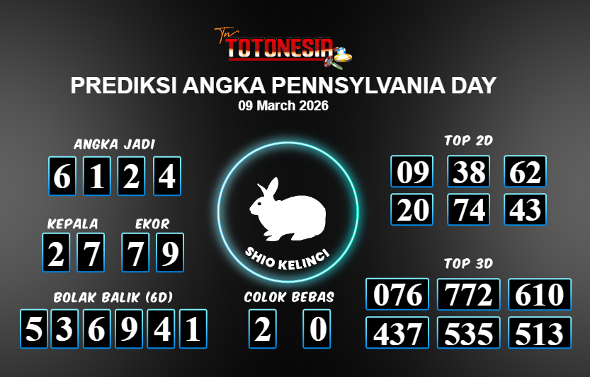 Toto Nesia : Bocoran Prediksi Togel PENNSYLVANIA DAY Tanggal 09 MARET 2026