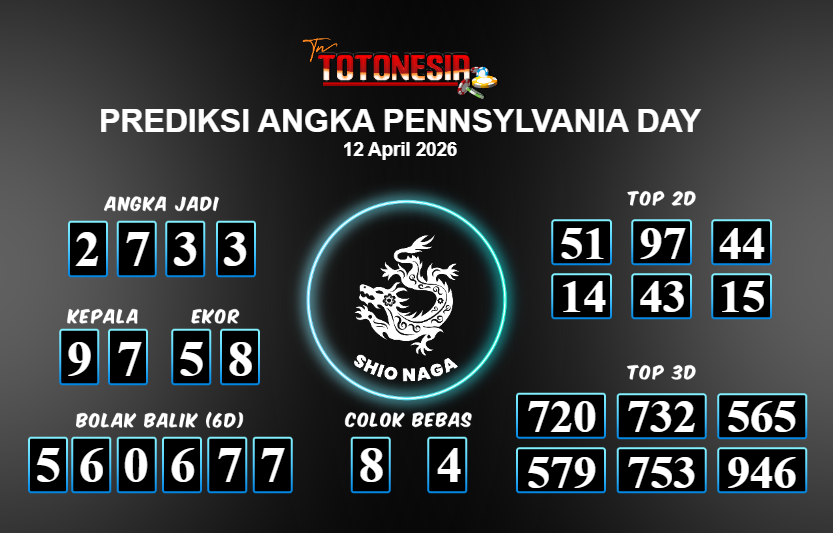 Prediksi PENNSYLVANIA DAY adalah perhitungan nomor togel unggulan dari agen suhu togel yang menyajikan angka prediksi paling akurat, sehingga memberikan banyak keuntungan saat bermain di pasar togel PENNSYLVANIA DAY . TotoNesia adalah prediksi dengan rasio kemenangan tertinggi di Indonesia. Sebagai penyedia togel yang dapat dipercaya, kami bertekad untuk memberikan ramalan togel yang handal dengan hadiah terbesarnya. Maka dari itu, jangan sampai terlewatkan prediksi bandar togel dengan hadiah terbanyak bet 100 dari pasar togel terbaik PENNSYLVANIA DAY Daftar sekarang juga di bandar