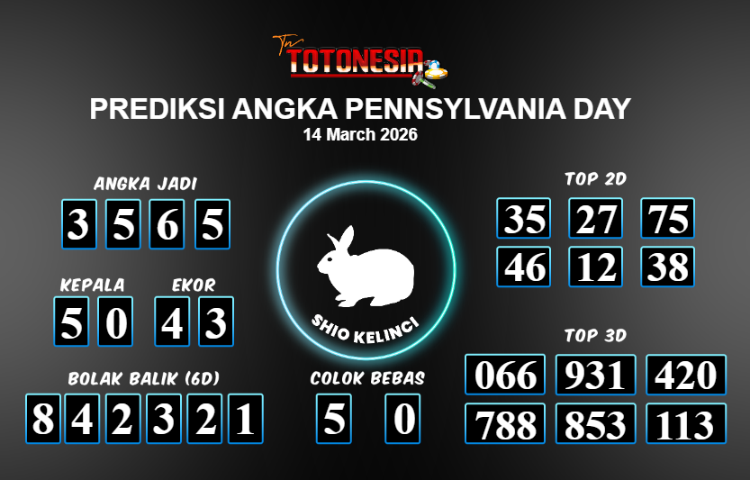 Toto Nesia : Bocoran Prediksi Togel PENNSYLVANIA DAY Tanggal 14 MARET 2026