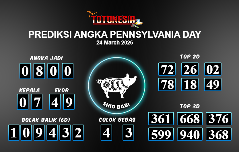 Toto Nesia : Bocoran Prediksi Togel PENNSYLVANIA DAY Tanggal 24 MARET 2026