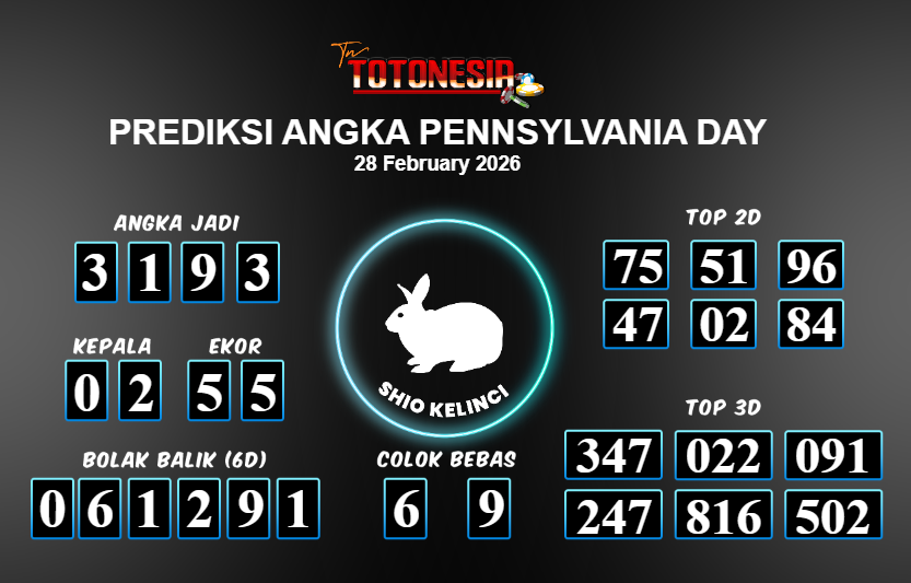 Toto Nesia : Bocoran Prediksi Togel PENNSYLVANIA DAY Tanggal 28 FEBUARI 2026