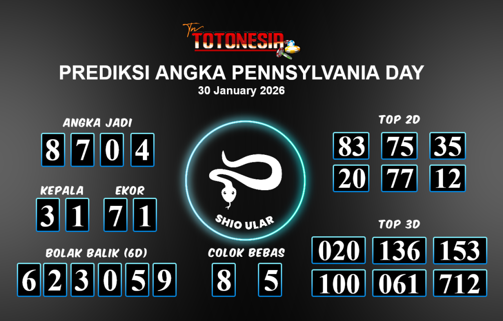 Toto Nesia : Bocoran Prediksi Togel PENNSYLVANIA DAY Tanggal 30 JANUARI 2026