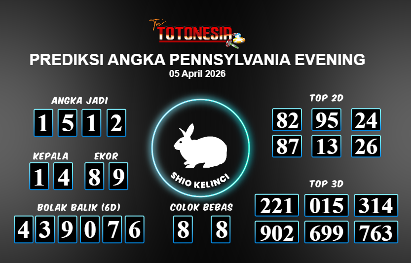 Toto Nesia : Bocoran Prediksi Togel PENNSYLVANIA EVENING Tanggal 05 APRIL 2026