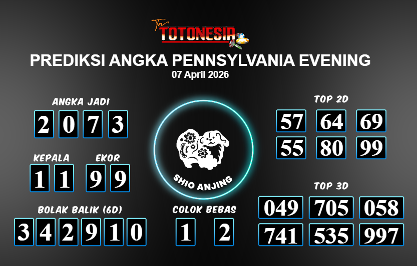 Toto Nesia : Bocoran Prediksi Togel PENNSYLVANIA EVENING Tanggal 07 APRIL 2026