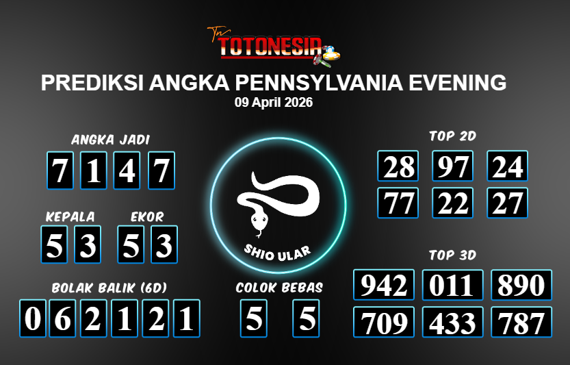 Toto Nesia : Bocoran Prediksi Togel PENNSYLVANIA EVENING Tanggal 09 APRIL 2026