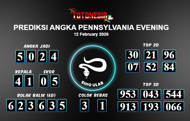 Toto Nesia : Bocoran Prediksi Togel PENNSYLVANIA EVENING Tanggal 12 FEBUARI 2026