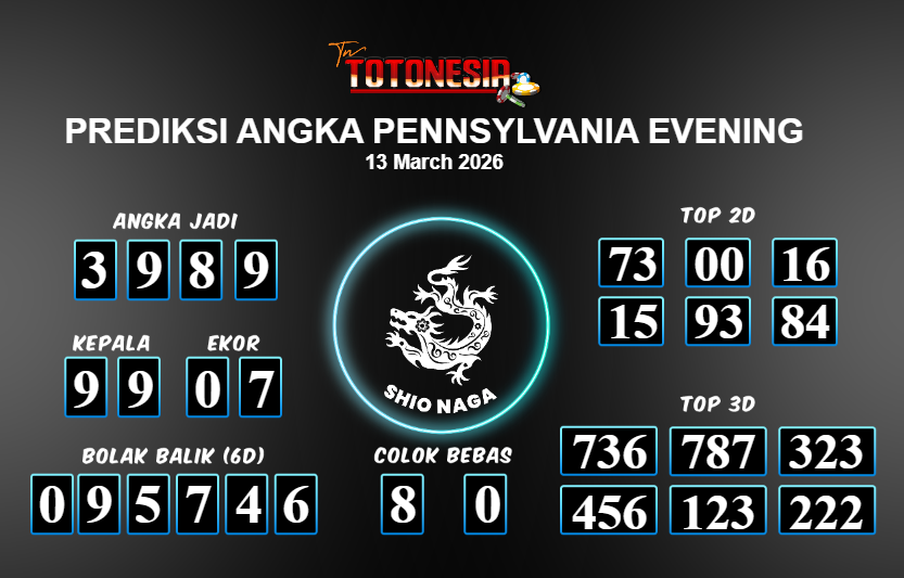 Toto Nesia : Bocoran Prediksi Togel PENNSYLVANIA EVENING Tanggal 13 MARET 2026