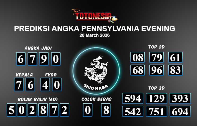 Toto Nesia : Bocoran Prediksi Togel PENNSYLVANIA EVENING Tanggal 20 MARET 2026